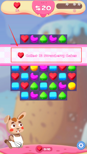 4、消除相同圖案,收集16塊草莓蛋糕過(guò)關(guān)。