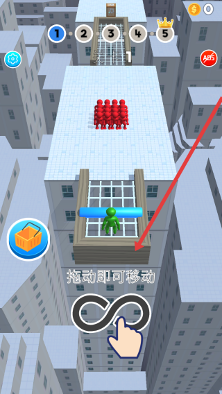 1、進(jìn)入到游戲,按提示拖動(dòng)綠色角色,調(diào)整位置,為應(yīng)對(duì)屋頂紅色人群挑戰(zhàn)做好準(zhǔn)備。