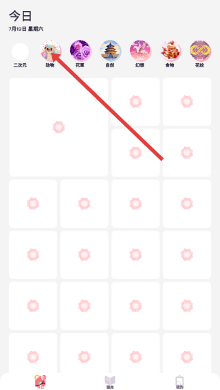 2、在游戲主界面,可看到二次元?jiǎng)游锘ú莸榷喾N分類圖案,選擇自己感興趣的圖案分類。