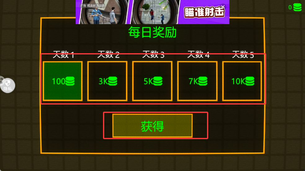 1、下載安裝好游戲后打開,點(diǎn)擊獲得可以獲得簽到每日獎勵。