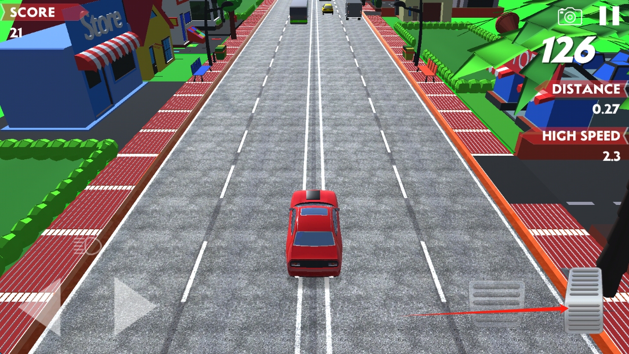 3、在駕駛操作場(chǎng)景中,根據(jù)箭頭提示,操控賽車(chē),躲避障礙,加速前進(jìn),順利完成賽車(chē)任務(wù),點(diǎn)擊加速。