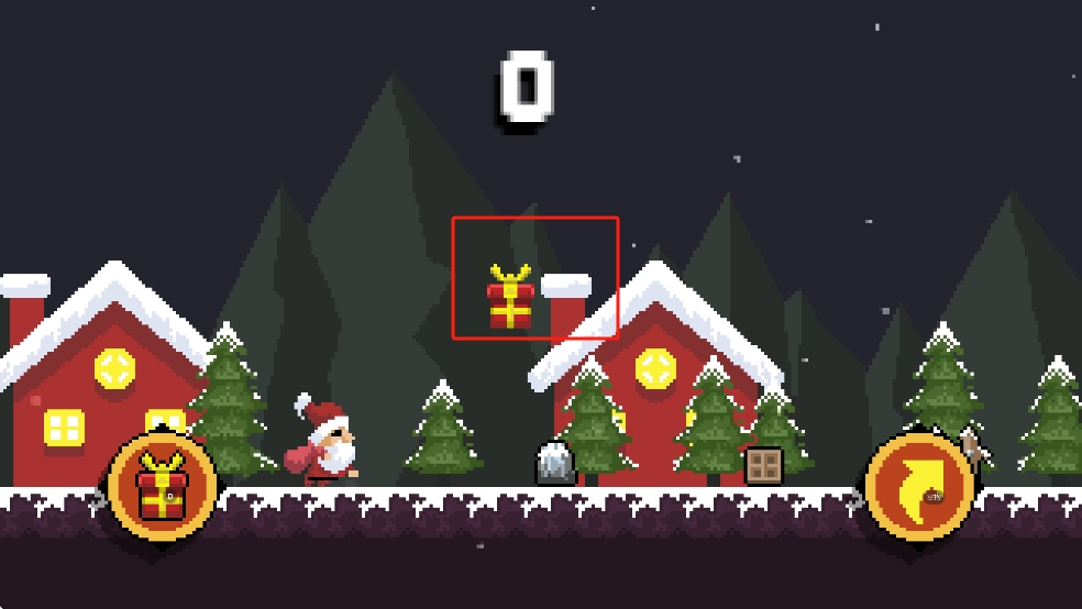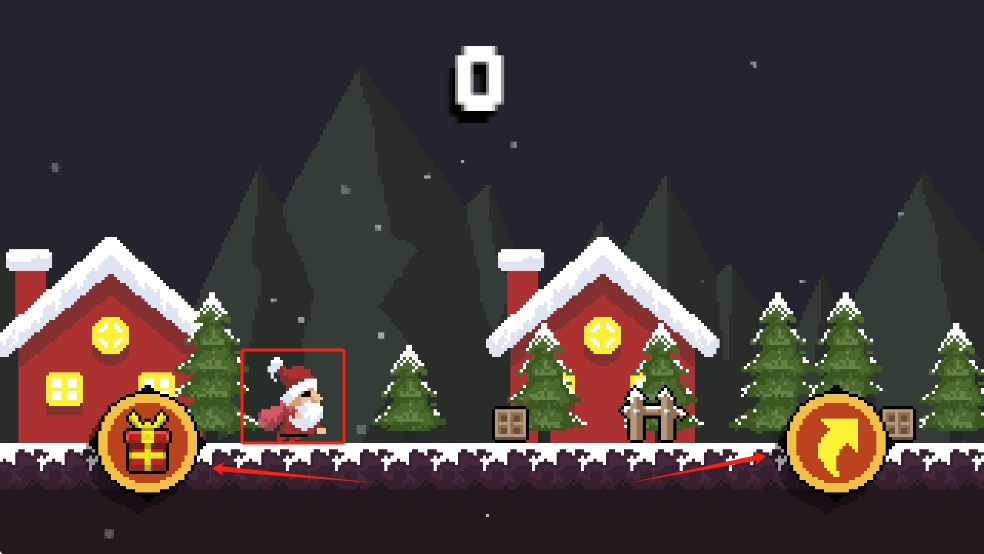 1、操控圣誕老人,利用右側(cè)箭頭按鈕控制移動方向,遇障礙調(diào)整路徑,點擊左側(cè)禮物按鈕釋放技能或道具。