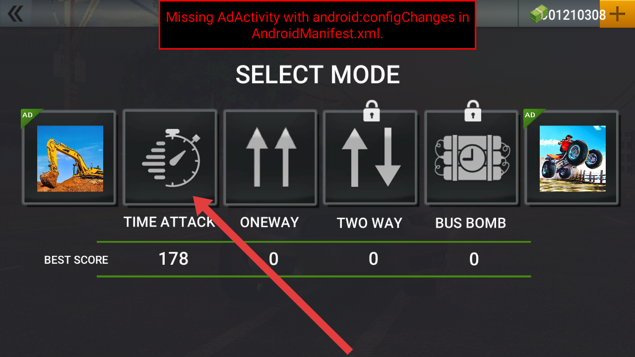 1、在關(guān)卡模式的選擇界面,點擊TIME ATTACK模式,開啟限時競速挑戰(zhàn),沖擊更高分?jǐn)?shù)。