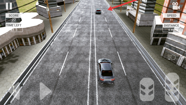 2、在游戲中需要操控車輛躲避前方的車輛,維持高速的行駛,積累分?jǐn)?shù)與距離,延長限時續(xù)航。