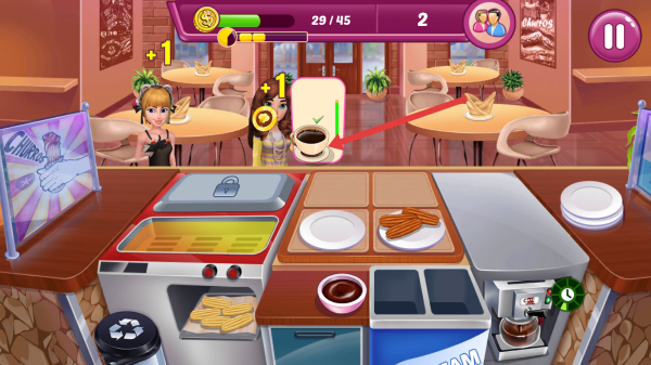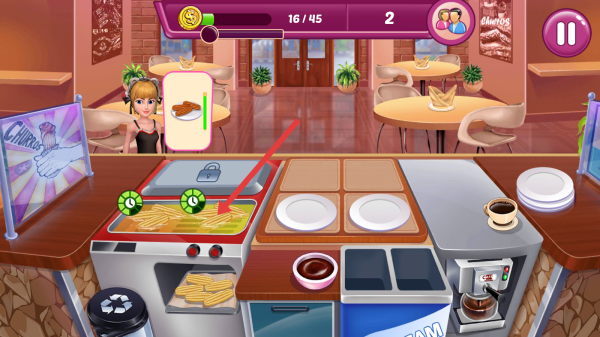 3、金幣優(yōu)先升烹飪臺解鎖更多格子、咖啡機縮短時間,卡關(guān)時看廣告得加速道具,保持訂單節(jié)奏。