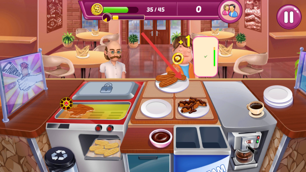3、關(guān)卡挑戰(zhàn)經(jīng)營升級:在不同關(guān)卡經(jīng)營對應(yīng)的快餐店,通過完成該類型餐廳的經(jīng)營目標(如達到指定營業(yè)額、服務(wù)特定數(shù)量顧客)解鎖新關(guān)卡與新設(shè)備,提升經(jīng)營的水平。