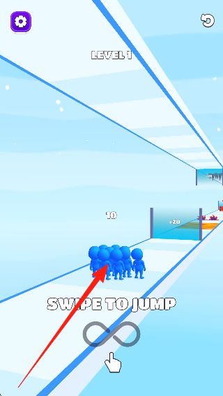 1、觀察跑酷賽道,了解控制小人奔跑、擴(kuò)大隊(duì)伍的基礎(chǔ)操作,查看初始障礙物分布,準(zhǔn)備開始奔跑。