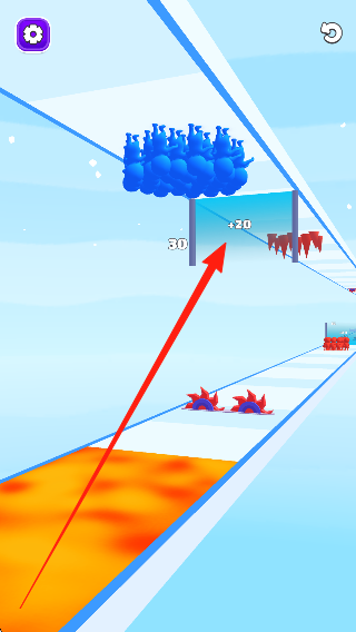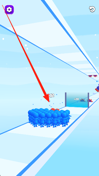 2、控制大批小人在賽道奔跑,靈活做出動(dòng)作避開障礙物,收集道具擴(kuò)大隊(duì)伍,持續(xù)向終點(diǎn)推進(jìn)。