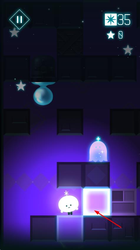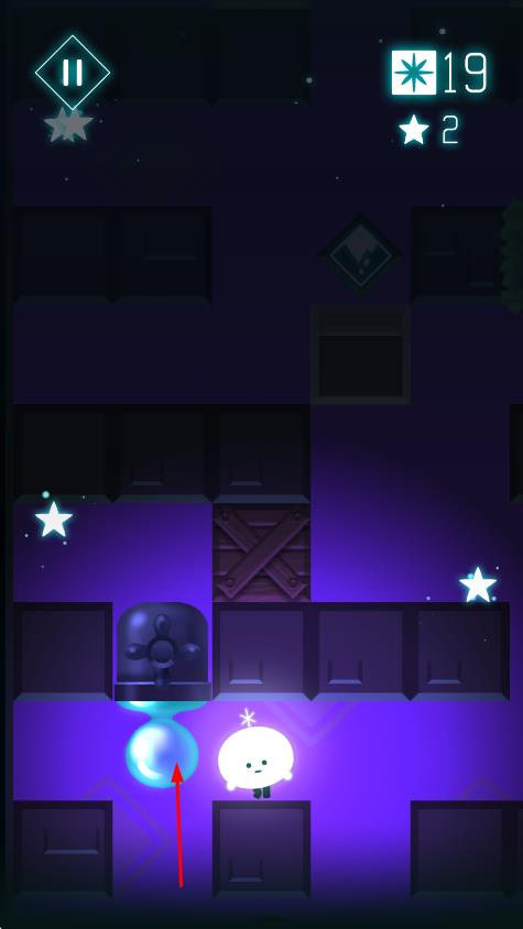 2、在關(guān)卡中點(diǎn)擊屏幕引導(dǎo)小星星避開障礙物,收集發(fā)光元素,利用場景中的機(jī)關(guān)打開通路,逐步向終點(diǎn)前進(jìn)。