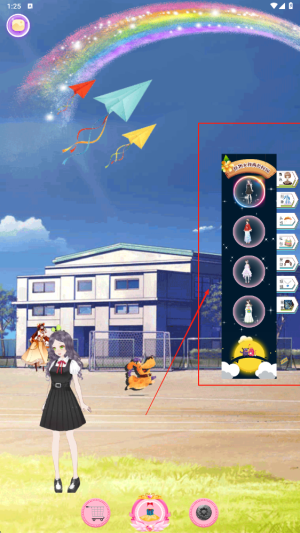2、游戲提供多種場(chǎng)景切換功能,玩家可在教室、操場(chǎng)、花園等不同場(chǎng)景中展示搭配效果,體驗(yàn)多樣校園生活。
