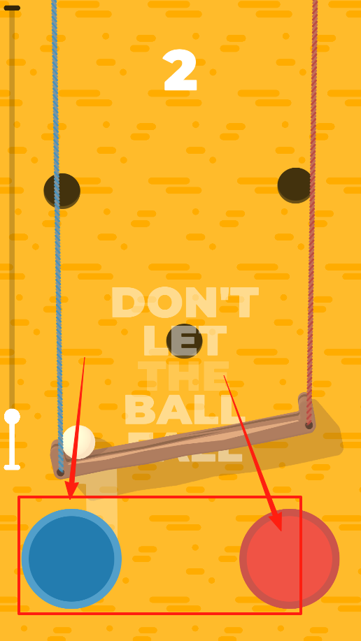 2、到第二關(guān)木板上小球位置變了,下方有藍(lán)色和紅色大圓按鈕,小球滾動時根據(jù)它的移動方向,快速點對應(yīng)顏色按鈕,讓木板傾斜把小球留在木板上,別讓它掉下去。