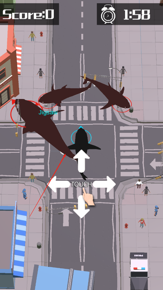 1、開局移動鯊魚吞噬人類或者小小建筑,讓鯊魚的體型越變越大,變得更大之后就可以吞噬比自己更小的鯊魚。