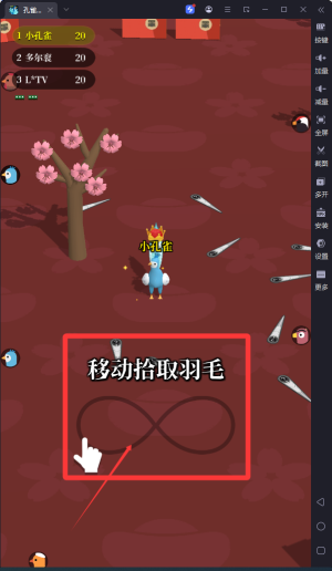 2、游戲中的羽毛分布在競(jìng)技場(chǎng)各個(gè)位置,玩家需要快速反應(yīng)搶占有利位置,從其他孔雀身上拔取更多羽毛來壯大自己。