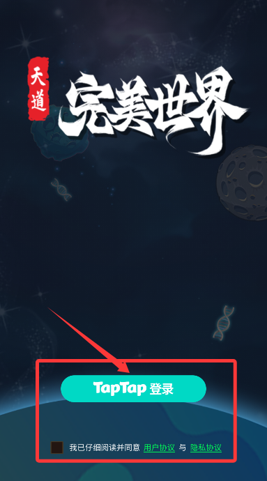 1、游戲啟動(dòng)后,在登錄界面閱讀并同意用戶協(xié)議,開啟你的天道世界之旅。