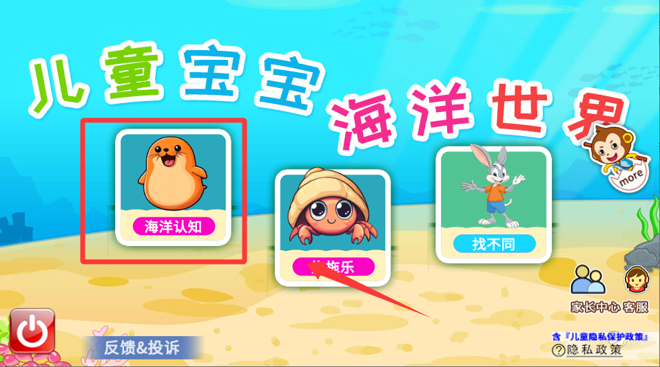 3、觀看有趣的動(dòng)畫小故事、學(xué)習(xí)海洋生物的生活習(xí)性。家長可陪同孩子一起玩、在互動(dòng)中提升孩子的觀察力和知識(shí)儲(chǔ)備。