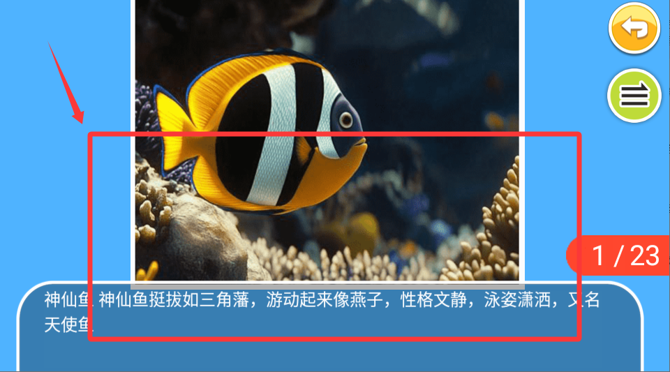 1、進(jìn)入游戲后先選擇想探索的海洋區(qū)域、點(diǎn)擊不同的海洋生物了解它們的名字和特征。通過簡單互動(dòng)認(rèn)識(shí)魚、海豚等常見動(dòng)物。