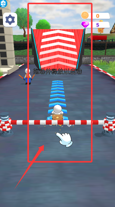 3、來到賽道,按照提示拖動(dòng)車輛后釋放,讓車輛啟動(dòng)并在賽道上行駛。