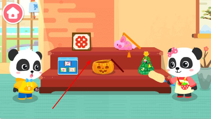 3、制作好的節(jié)日手工會(huì)展示在場(chǎng)景中,和熊貓角色互動(dòng),了解節(jié)日習(xí)俗。