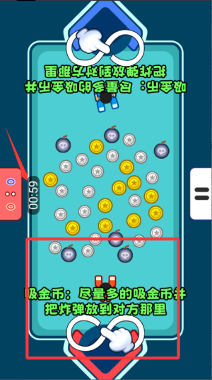 2、換到吃金幣模式時各自選角色,開始后控制角色快速移動吃屏幕上的金幣,時間到后看誰吃的多,吃到多的人就是贏家。
