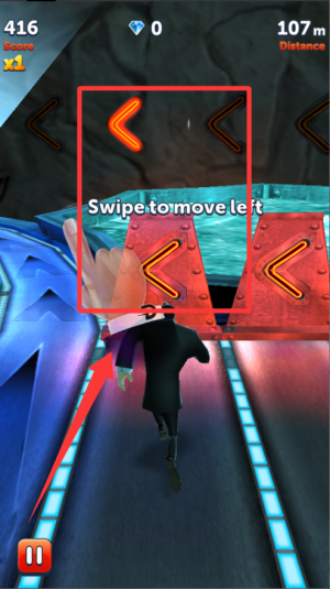 1、開始游戲后控制特工自動(dòng)奔跑,滑動(dòng)屏幕讓他跳躍或下蹲,避開欄桿和陷阱,遇到敵人時(shí)快速翻滾過(guò)去或使用技能反擊。
