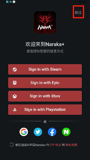 3、也可以直接點(diǎn)擊右上角跳過,下次再登陸。
