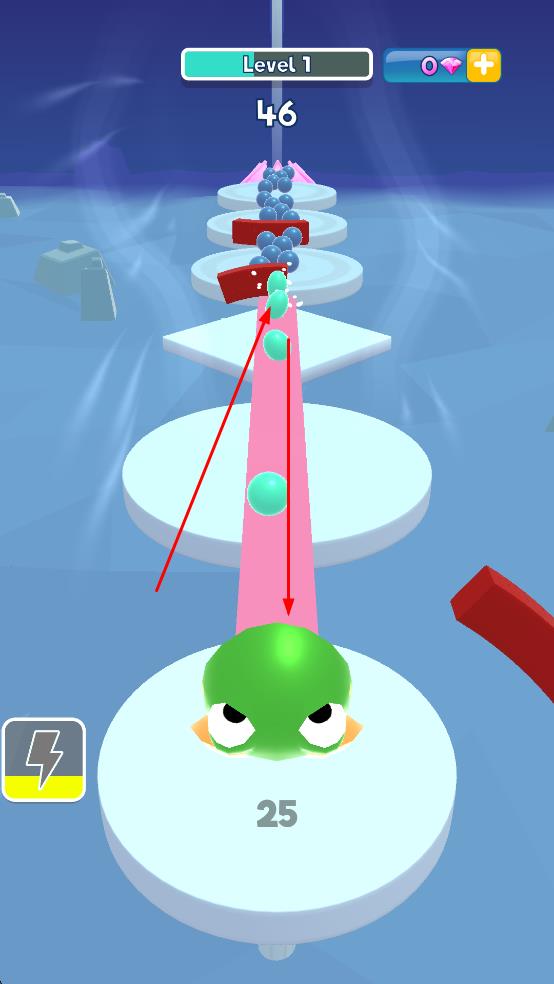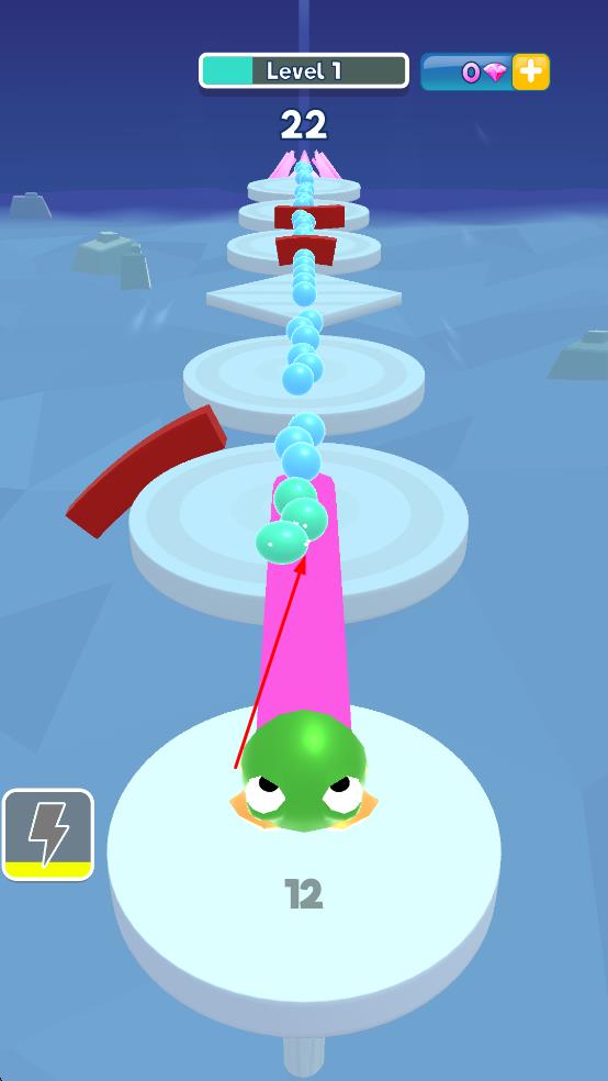 2、滾動(dòng)時(shí)留意上方數(shù)字變化,避開紅色障礙,維持收集節(jié)奏。