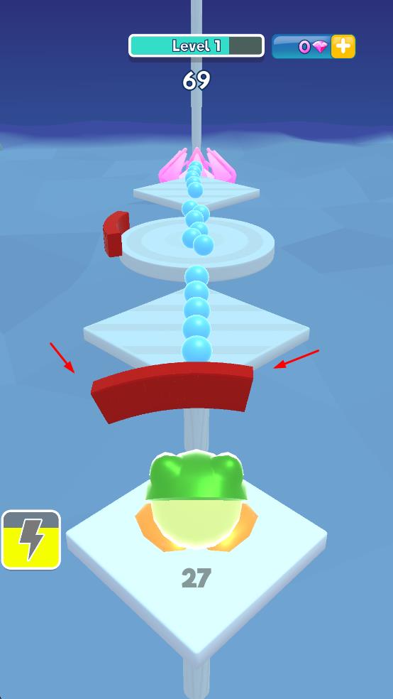 2、伸舌跨平臺(tái)避障礙:遇到平臺(tái)間隔時(shí),點(diǎn)擊觸發(fā)青蛙伸出舌頭,借助舌頭跨越到下一個(gè)平臺(tái),跨越前需仔細(xì)觀察平臺(tái)位置與障礙物,避免舌頭碰撞導(dǎo)致失敗,合理運(yùn)用伸舌技能。