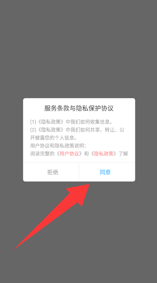 1、點擊服務條款與隱私保護協(xié)議里的同意并進入。