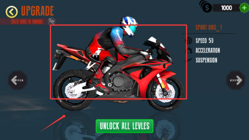 2、在車庫界面瀏覽并挑選心儀的機車,每輛摩托都擁有獨特的性能參數(shù)和外觀特征。