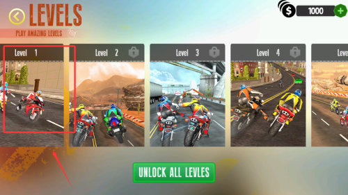 1、啟動游戲后點擊start按鈕,直接進入熱血沸騰的摩托競速主界面。