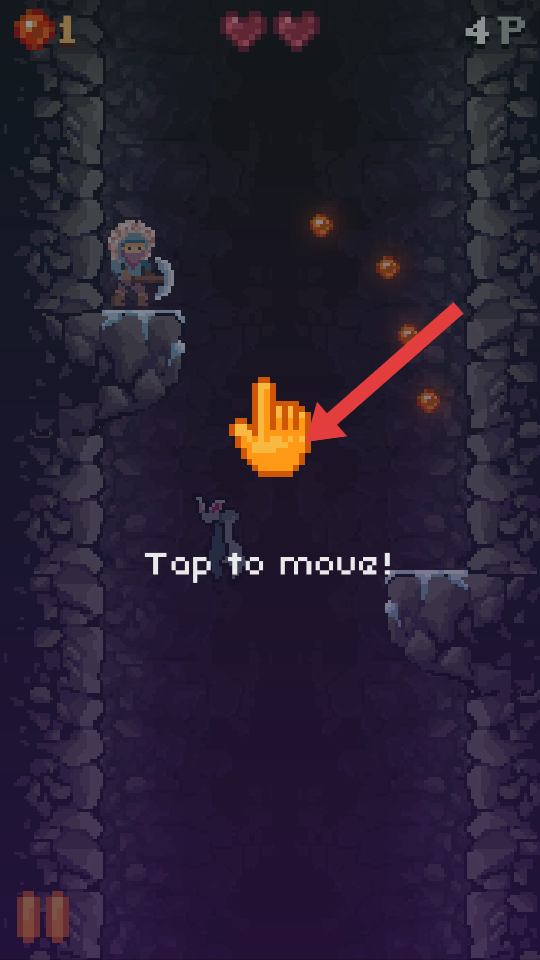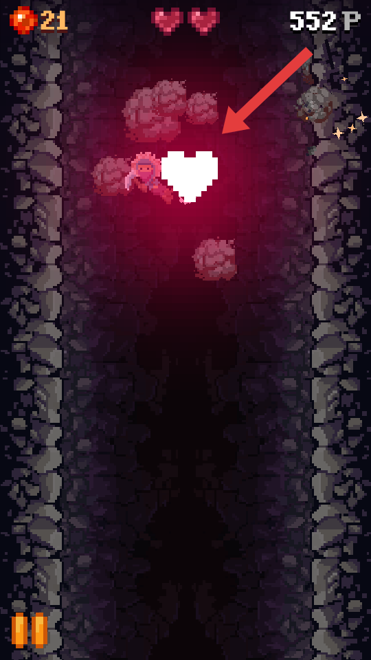 3、見紅心的道具立即點擊拾取回血,利用場景元素巖石臺接力跳,持續(xù)深入洞穴,積累資源的升級。