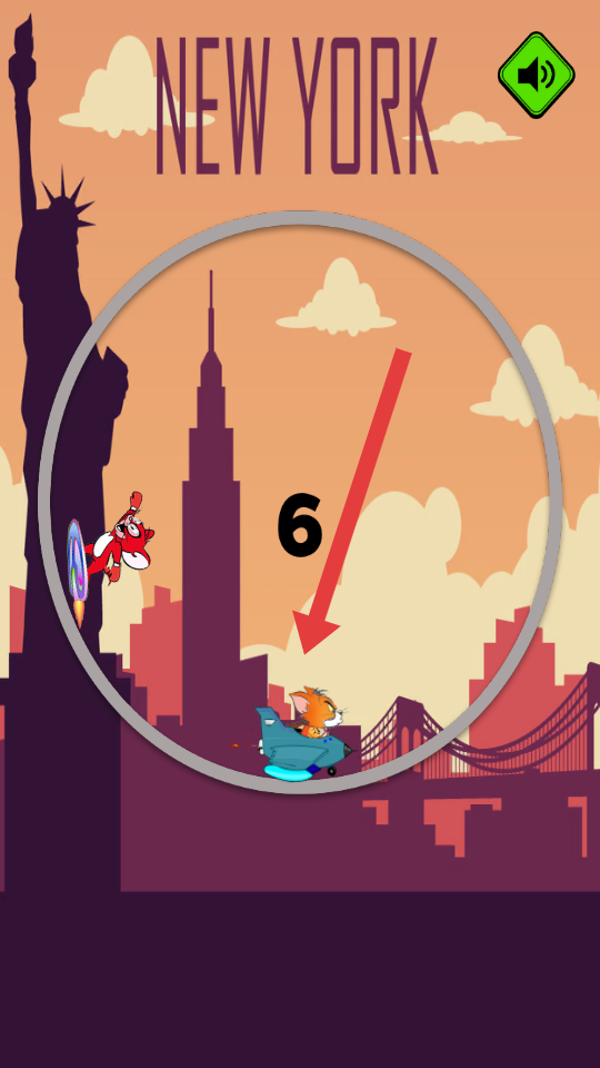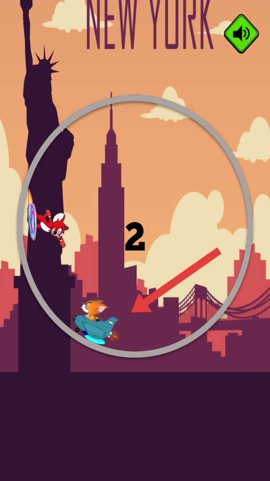 1、選擇角色湯姆或者杰瑞,觀察圓環(huán)角色的位置,點(diǎn)擊屏幕控制移動(dòng),讓角色穿環(huán),優(yōu)先過數(shù)大環(huán)。