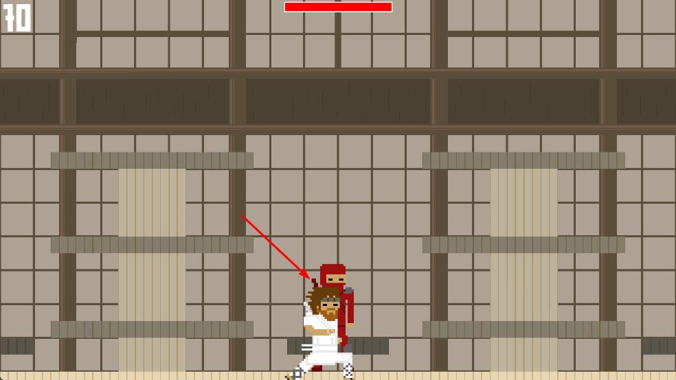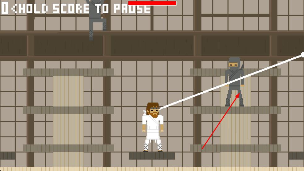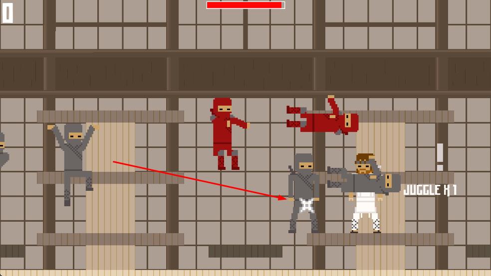 1、操控白衣角色,在日式場(chǎng)景迎戰(zhàn)紅、灰忍者,關(guān)注血條維持存活。