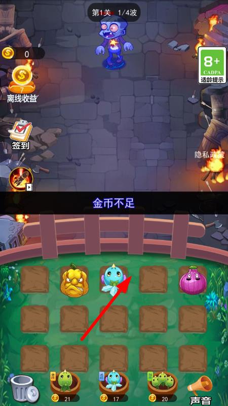 2、植物搭配策略:結(jié)合地形布局搭配植物,如直線通道放置單體高傷植物,開闊區(qū)域放置范圍攻擊植物,利用植物特性形成互補(bǔ)防御網(wǎng)。