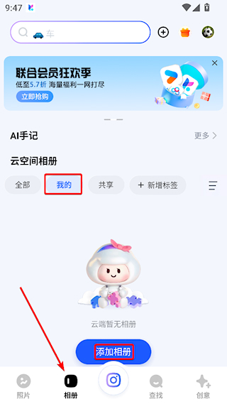 1、下載安裝好軟件后打開,點擊下方添加相冊。