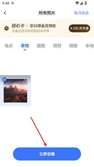 3、選擇需要上傳的照片后,點擊立即創(chuàng)建。