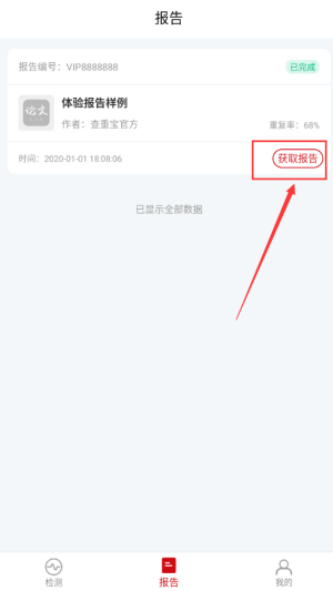 2、點擊紅框獲取報告,下載詳細查重結(jié)果文檔。