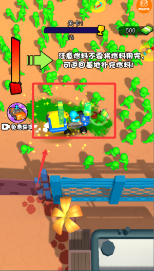 3、戰(zhàn)車造好后利用移動(dòng)優(yōu)勢(shì)沖撞僵尸群,邊打邊退避免被包圍,合理使用車體技能能清怪更高效。