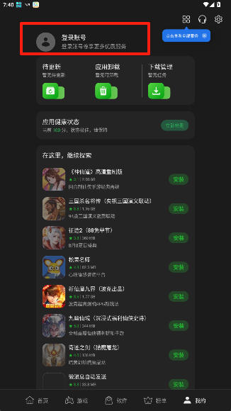 3、進(jìn)入個(gè)人中心后,點(diǎn)擊登陸賬號(hào)即可進(jìn)入登錄界面。