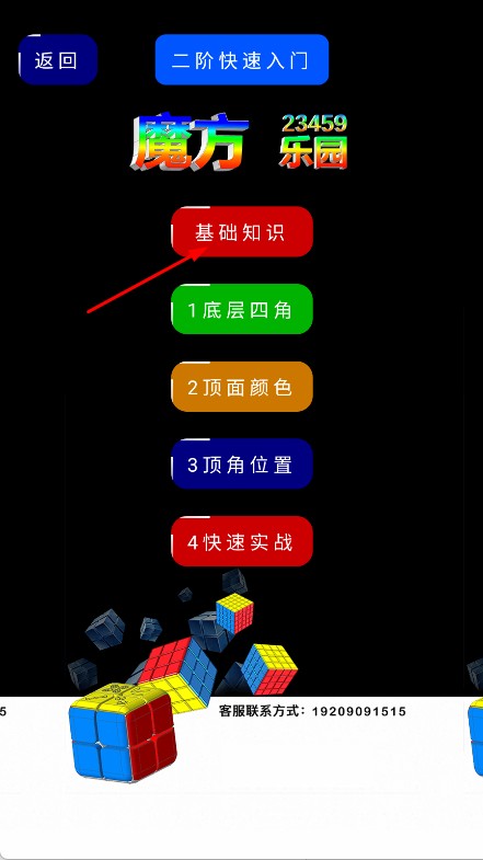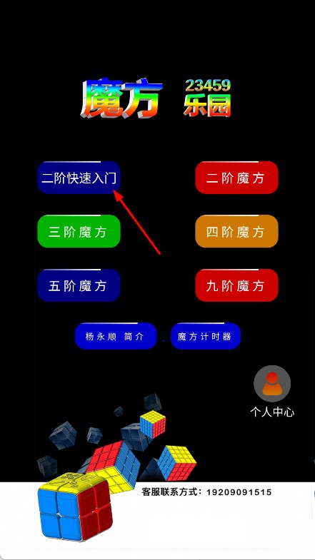 1、打開(kāi)魔方樂(lè)園,在首頁(yè),選擇二階快速入門(mén)選項(xiàng)。
