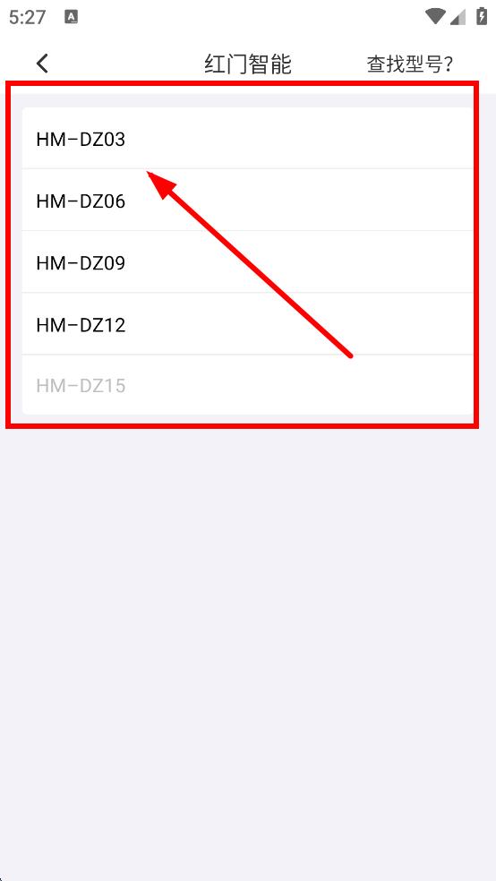 2、選擇紅門智能品牌后,在其型號列表中,可根據(jù)需求選擇對應(yīng)型號,比如選擇【HM-DZ03】。