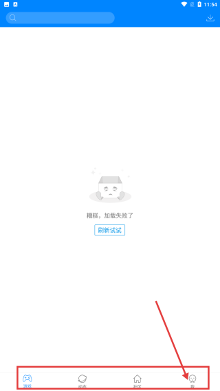 1、在應(yīng)用加載失敗頁,點擊底部我的,進入個人中心界面。