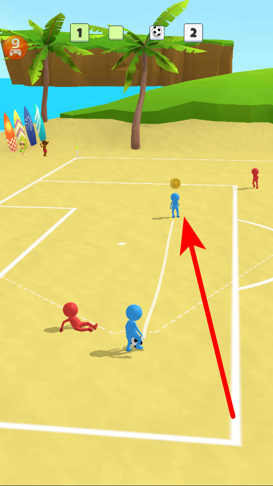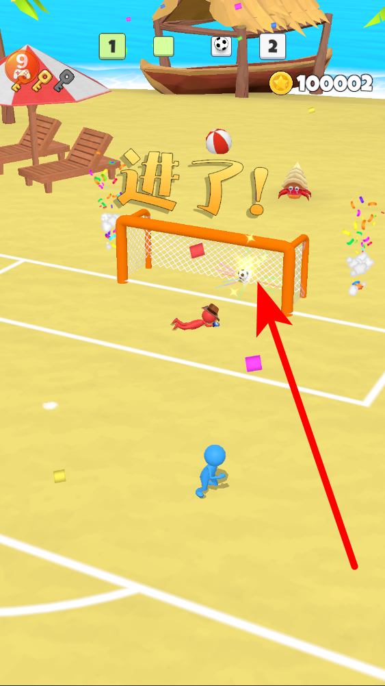 1、在沙灘足球場(chǎng)場(chǎng)景中,操控角色進(jìn)行足球比賽,通過(guò)合理的操作,將足球踢入對(duì)方球門(mén),成功進(jìn)球時(shí)會(huì)有進(jìn)了!的提示,體驗(yàn)足球競(jìng)技的快感。