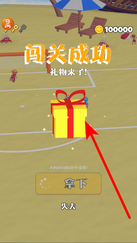 3、接著領(lǐng)取闖關(guān)獎(jiǎng)勵(lì),當(dāng)成功闖過(guò)關(guān)卡后,會(huì)出現(xiàn)闖關(guān)成功的提示,同時(shí)會(huì)有禮物獎(jiǎng)勵(lì),點(diǎn)擊拿下,就能獲取這份獎(jiǎng)勵(lì),獎(jiǎng)勵(lì)中包含一定數(shù)量的金幣等物品。