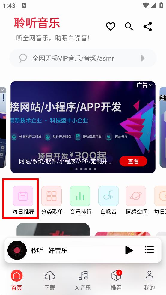 2、在主界面,點(diǎn)擊每日推薦,進(jìn)入每日推薦頁面。