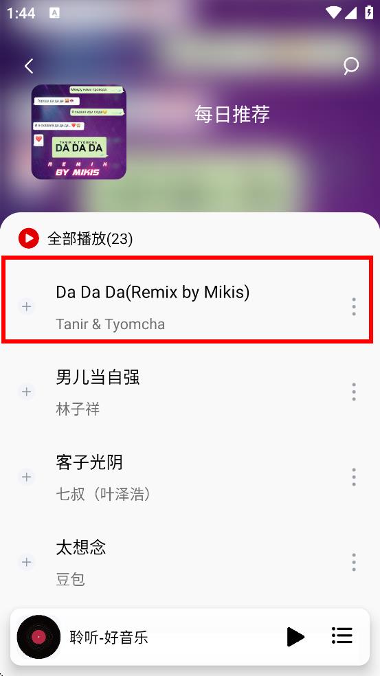 3、在每日推薦頁面,選擇想聽的歌曲,點(diǎn)擊進(jìn)入播放頁面。