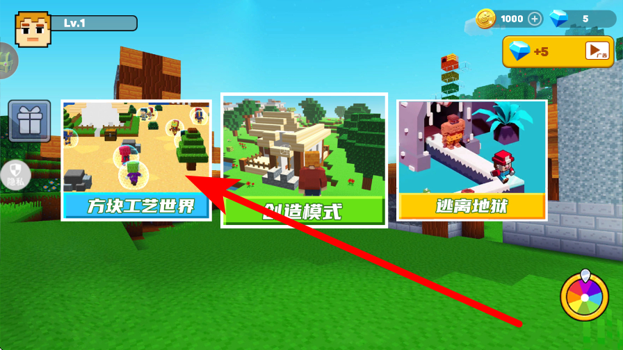 1、新手游玩首先選擇模式,在界面中可挑選方塊工藝世界等模式,進(jìn)入不同的像素場景,開啟相應(yīng)的冒險戰(zhàn)斗旅程。