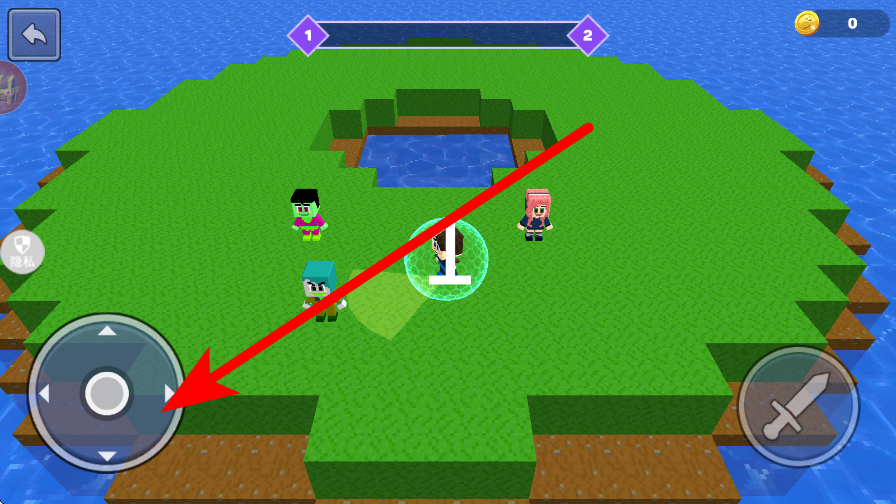 2、然后操控移動,通過操作移動相關(guān)按鈕,控制角色在像素場景中移動,前往不同位置,為與其他角色的戰(zhàn)斗做好準(zhǔn)備。