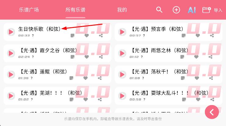3、在所有樂(lè)譜中,選擇想要的樂(lè)譜,進(jìn)入該樂(lè)譜演奏頁(yè)面。