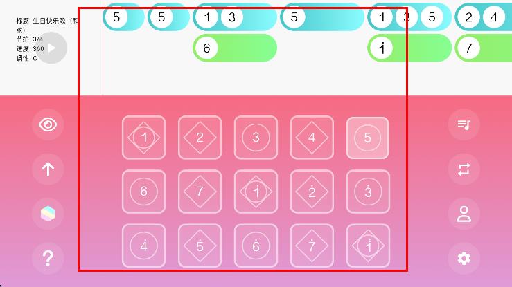 4、在樂(lè)譜演奏頁(yè)面,可根據(jù)上方音符提示,在下方鍵盤(pán)上進(jìn)行演奏。